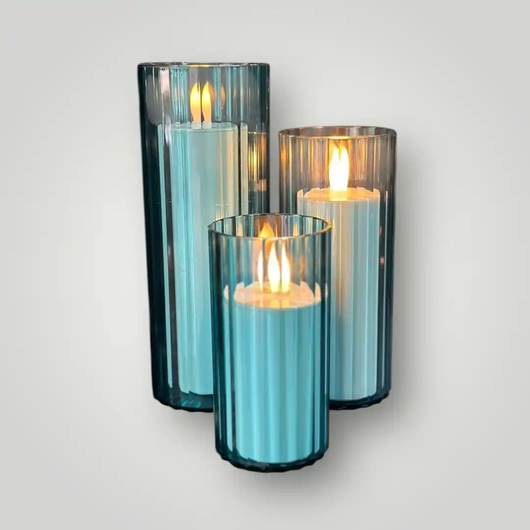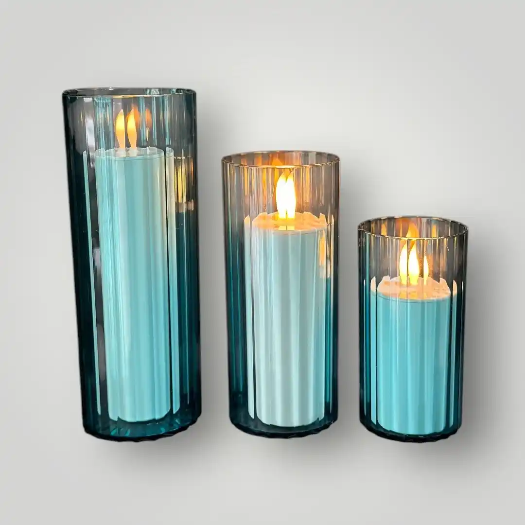 3′ lü Şeffaf Mavi Silindir Mumluk