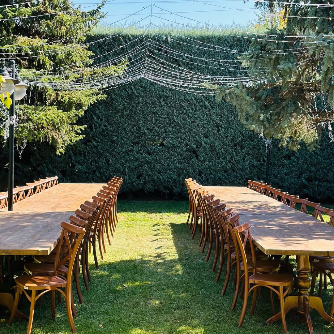 Ahşap şölen masalar, sağlam yapıları ve estetik görünümleriyle etkinliklerinize rustik bir hava katarken, misafirlerinize de rahat ve geniş oturma alanları sağlar. Doğal ahşap dokusu sayesinde her mekâna uyum sağlayarak samimi ve sıcak bir ortam oluşturur.